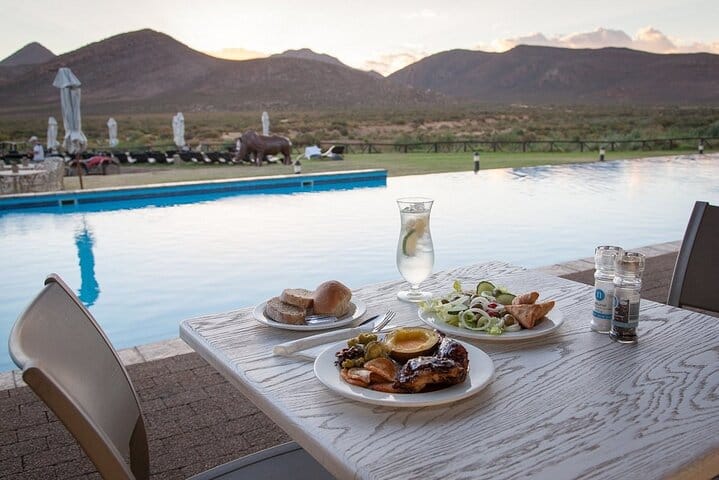 Finally, arrive at aquila private game reserve, where you can experience exhilarating wildlife encounters on a safari, spotting iconic African animals like lions, elephants, and rhinos against the backdrop of the karoo plains.