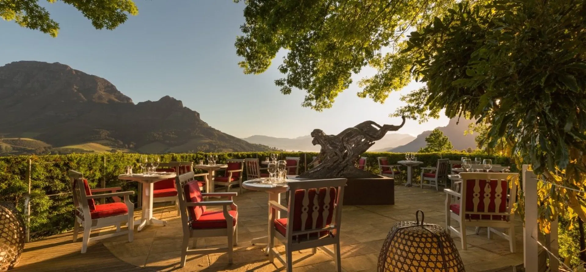 Franschhoek, known as the "food and wine capital of South Africa," boasts an array of gourmet restaurants, artisanal markets, and boutique wineries set amidst the breathtaking vineyard-drapes that define the Cape winelands, making it a must-visit destination for wine enthusiasts and epicureans.